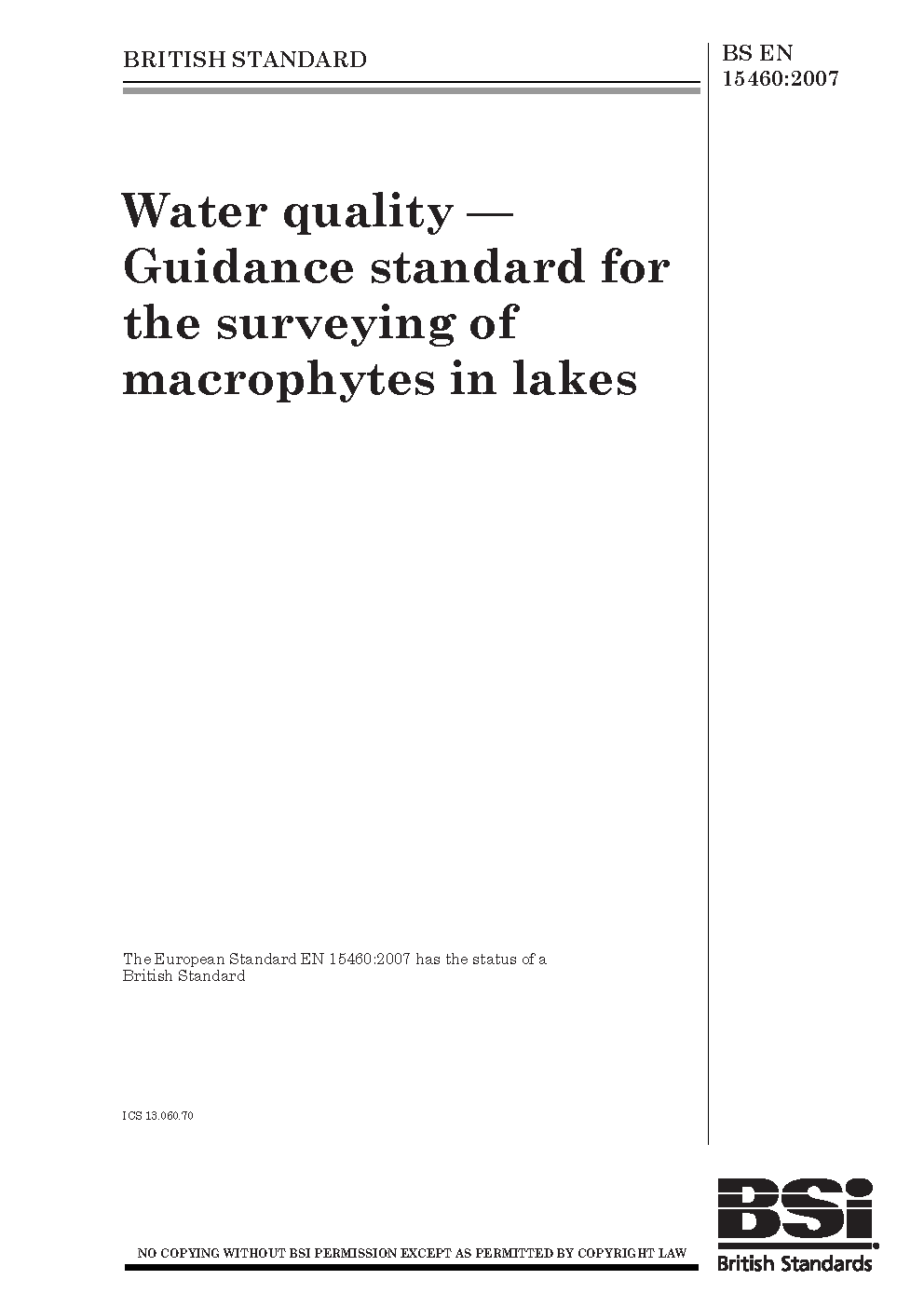 Water quality. Guidance standard for the surveying of macrophytes in lakes