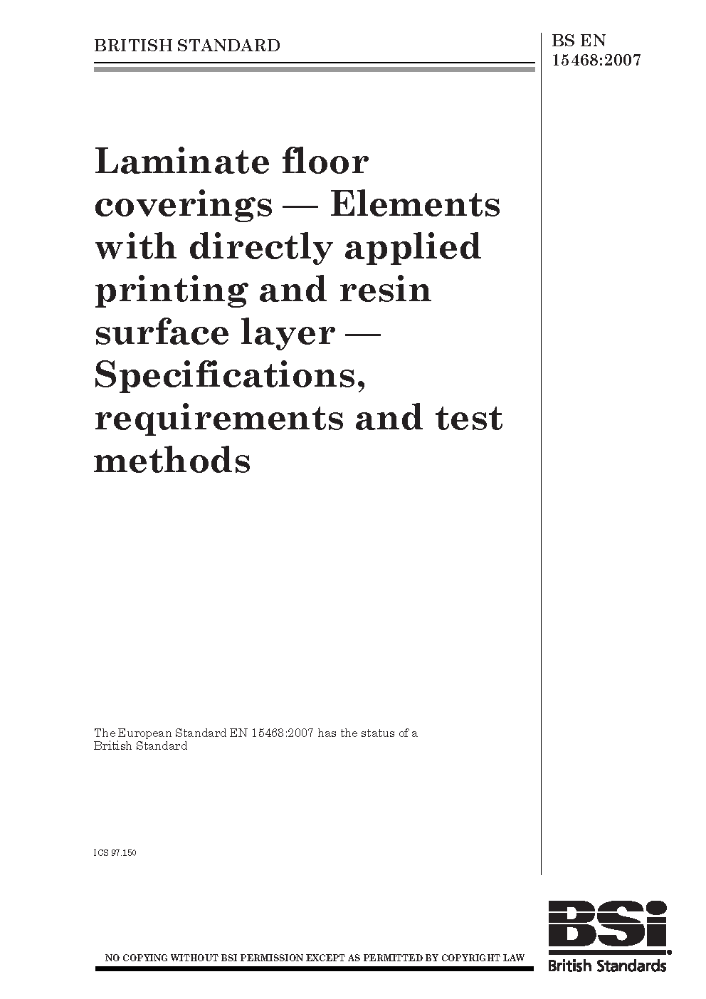 Laminate floor coverings. Elements with directly applied printing and resin surface layer. Specifications, requirements and test methods