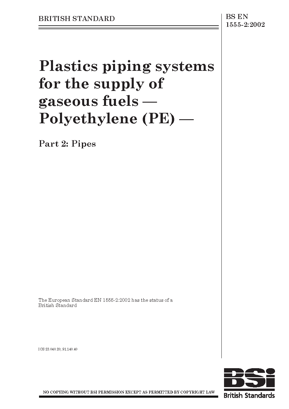 Plastics piping systems for the supply of gaseous fuels. Polyethylene (PE) Pipes