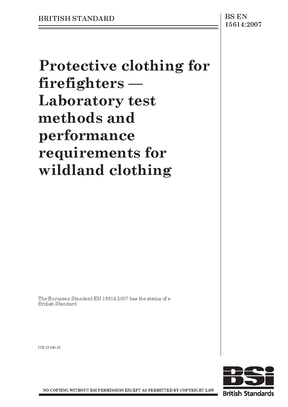 Protective clothing for firefighters. Laboratory test methods and performance requirements for wildland clothing