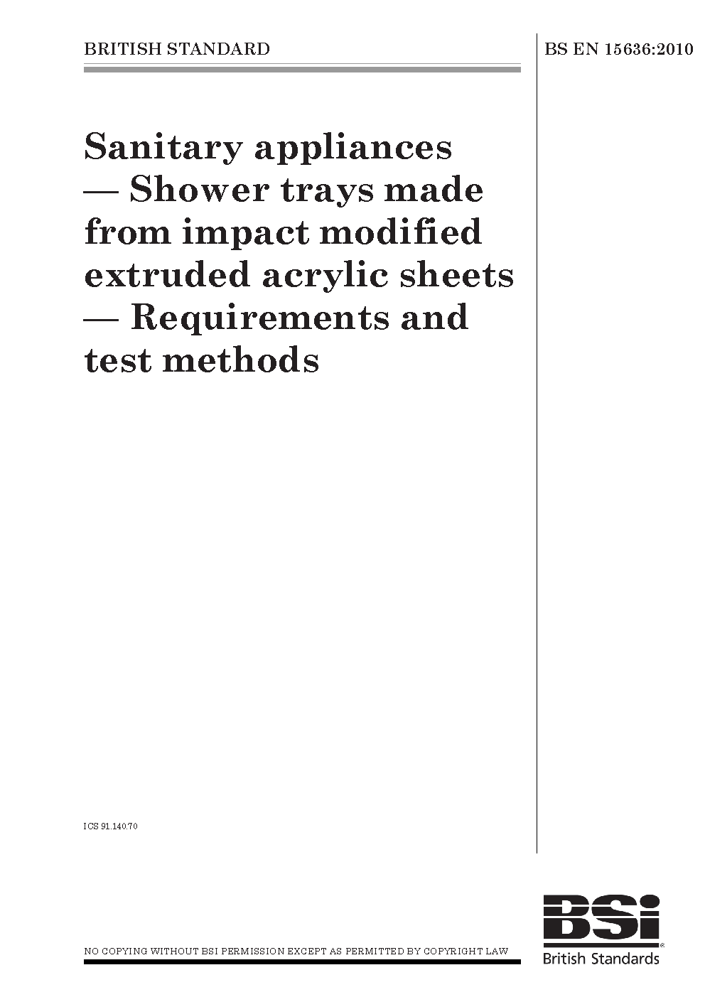 Sanitary appliances. Shower trays made from impact modified extruded acrylic sheets. Requirements and test methods