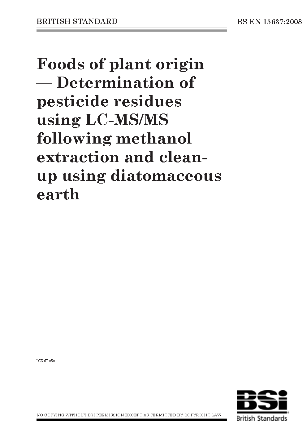 Foods of plant origin. Determination of pesticide residues using LC-MS/MS following methanol extraction and clean-up using diatomaceous earth