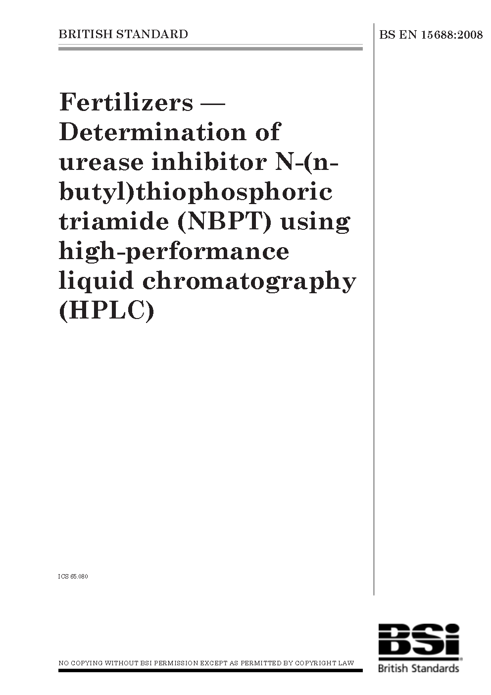 Fertilizers. Determination of urease inhibitor N-(n-butyl)thiophosphoric triamide (NBPT) using high-performance liquid chromatography (HPLC)