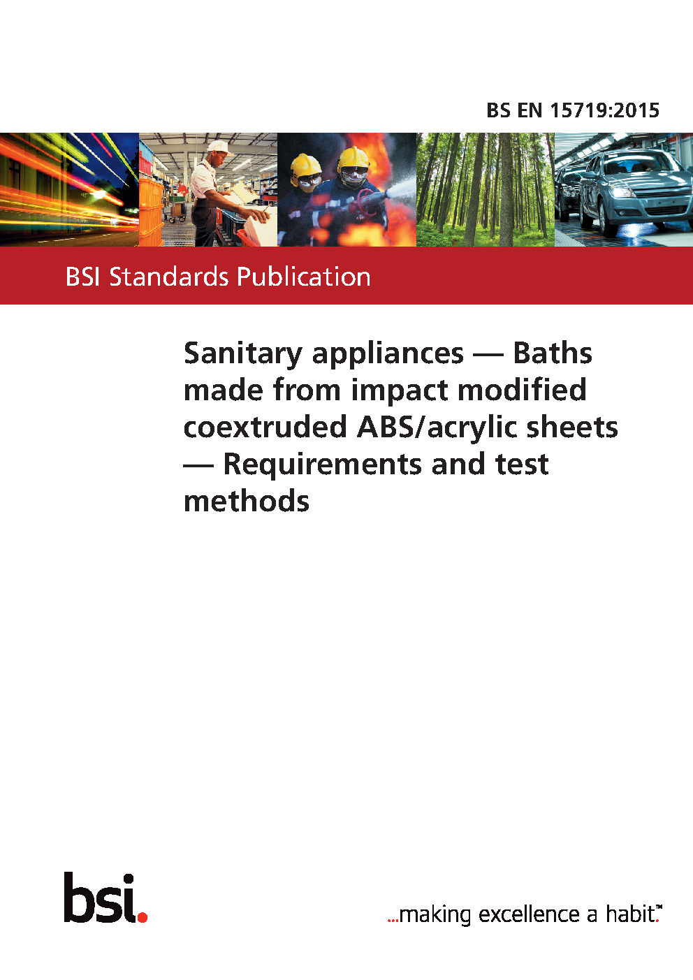 Sanitary appliances. Baths made from impact modified coextruded ABS/acrylic sheets. Requirements and test methods