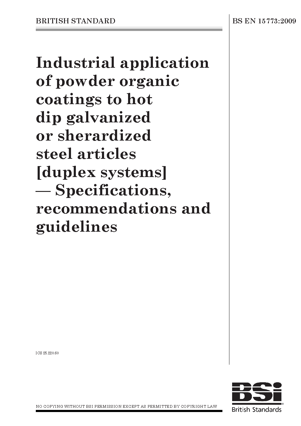 Industrial application of powder organic coatings to hot dip galvanized or sherardized steel articles [duplex systems]. Specifications, recommendations and guidelines
