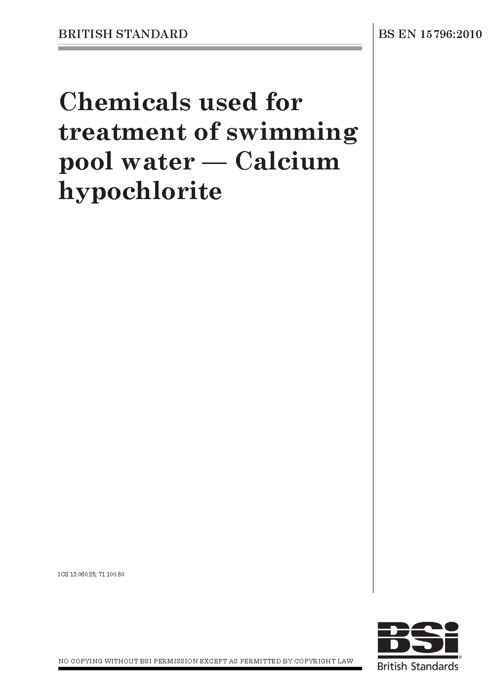 Water treatment;Hypochlorites;Calcium inorganic compounds;Safety measures;Water purification;Storage;Swimming pools;Purity;Marking;Chemical composition