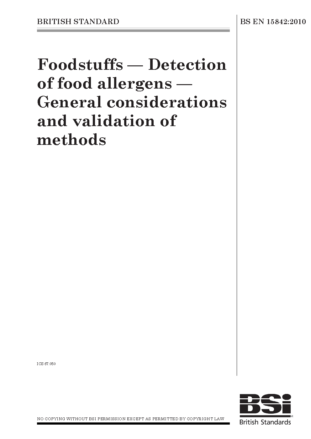 Foodstuffs. Detection of food allergens. General considerations and validation of methods