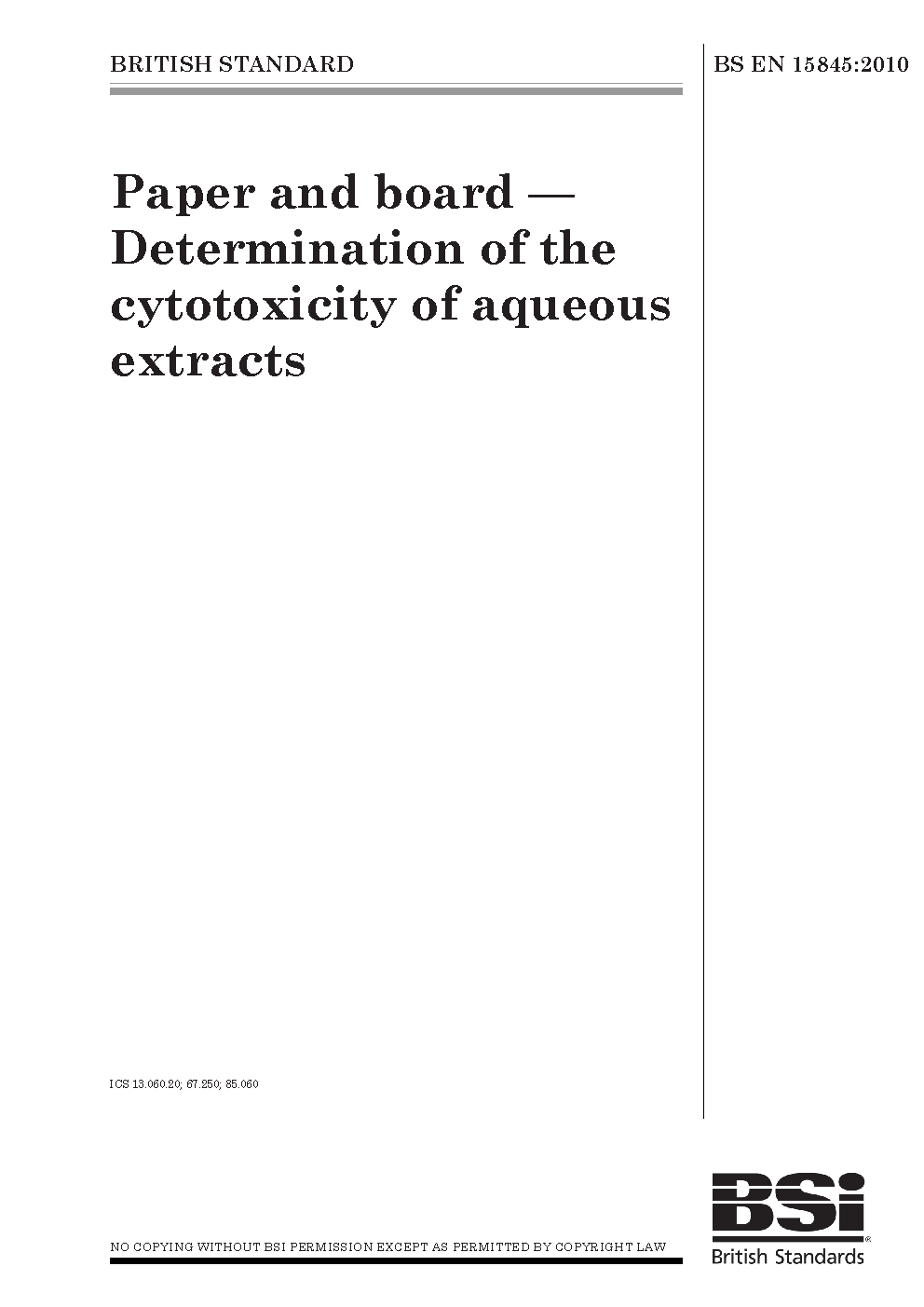Chemical analysis and testing;Cytotoxicity tests;Toxicity;Aqueous extraction methods;Board (paper);Materials in contact with food;Specimen preparation;Biological analysis and testing;Paper