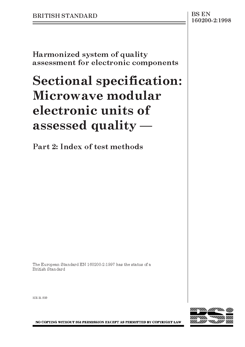 Harmonized system of quality assessment for electronic components. Sectional specification. Microwave modular units assessed Index test methods