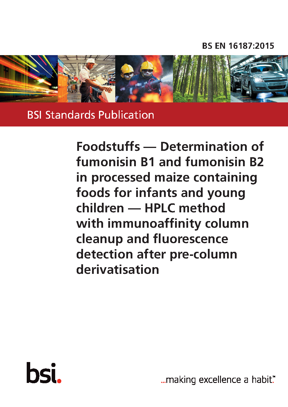 Foodstuffs. Determination of fumonisin B1 and fumonisin B2 in processed maize containing foods for infants and young children. HPLC method with immunoaffinity column cleanup and fluorescence detection after pre-column derivatisation