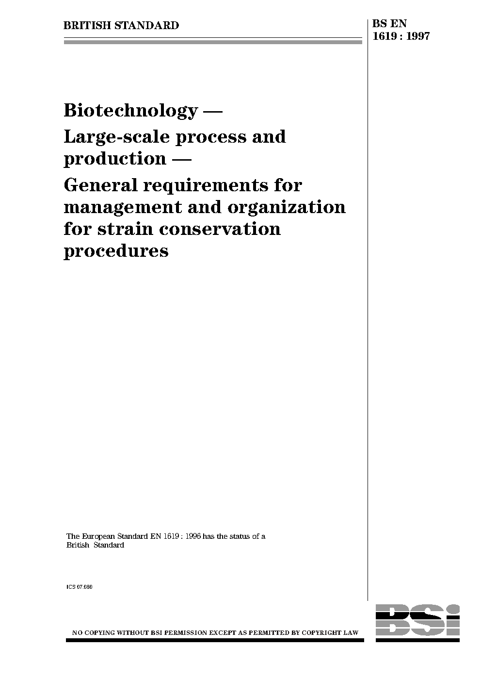 Biotechnology. Large-scale process and production. General requirements for management and organization for strain conservation procedures