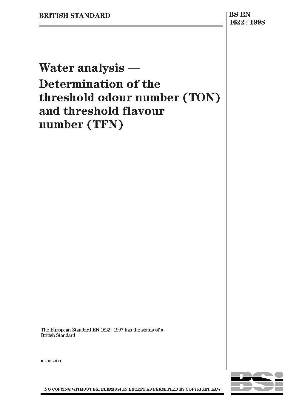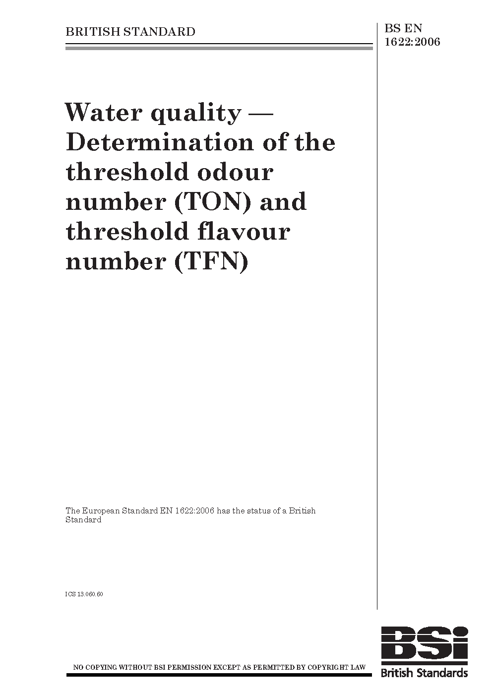 Water quality. Determination of the threshold odour number (TON) and threshold flavour number (TFN)