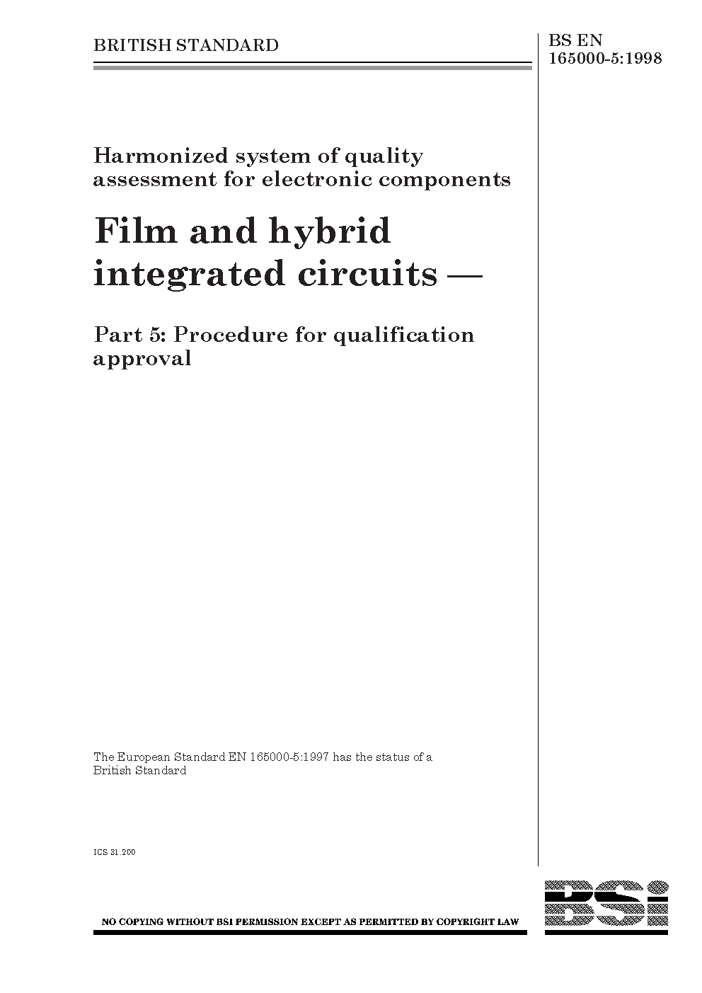Integrated film circuits;Performance testing;Integrated circuits;Design;Hybrid integrated circuits;Acceptance (approval);Quality assurance systems;Technical data sheets;Detail specification;Technical documents;Reproducibility;Qualification approval;Inspection;Verification;Specimen preparation;Conformity;Electronic equipment and components;Test specimens;Electrical equipment;Purchasing;Assessed quality;Quality assurance