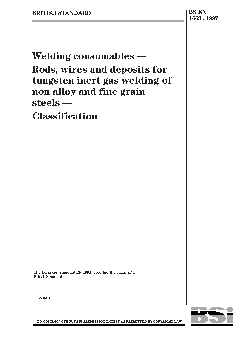 Welding consumables. Rods, wires and deposits for tungsten inert gas welding of non alloy and fine grain steels. Classification