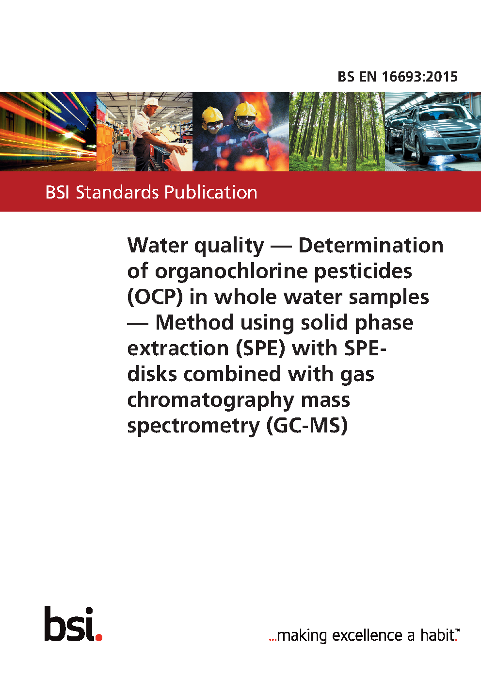 Water quality. Determination of organochlorine pesticides (OCP) in whole water samples. Method using solid phase extraction (SPE) with SPE-disks combined with gas chromatography mass spectrometry (GC-MS)