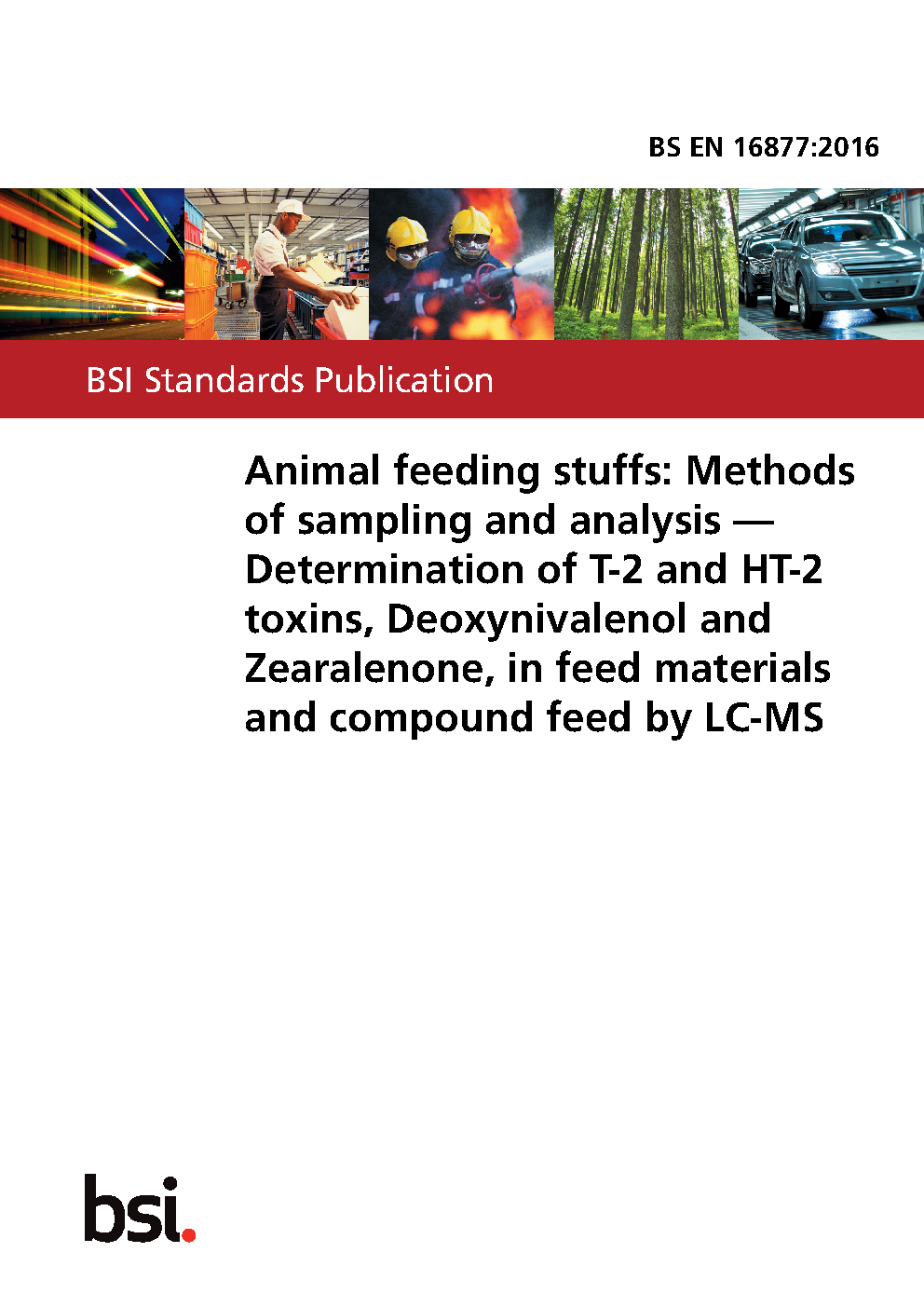 Animal feeding stuffs. Methods of sampling and analysis. Determination of T-2 and HT-2 toxins, Deoxynivalenol and Zearalenone, in feed materials and compound feed by LCMS
