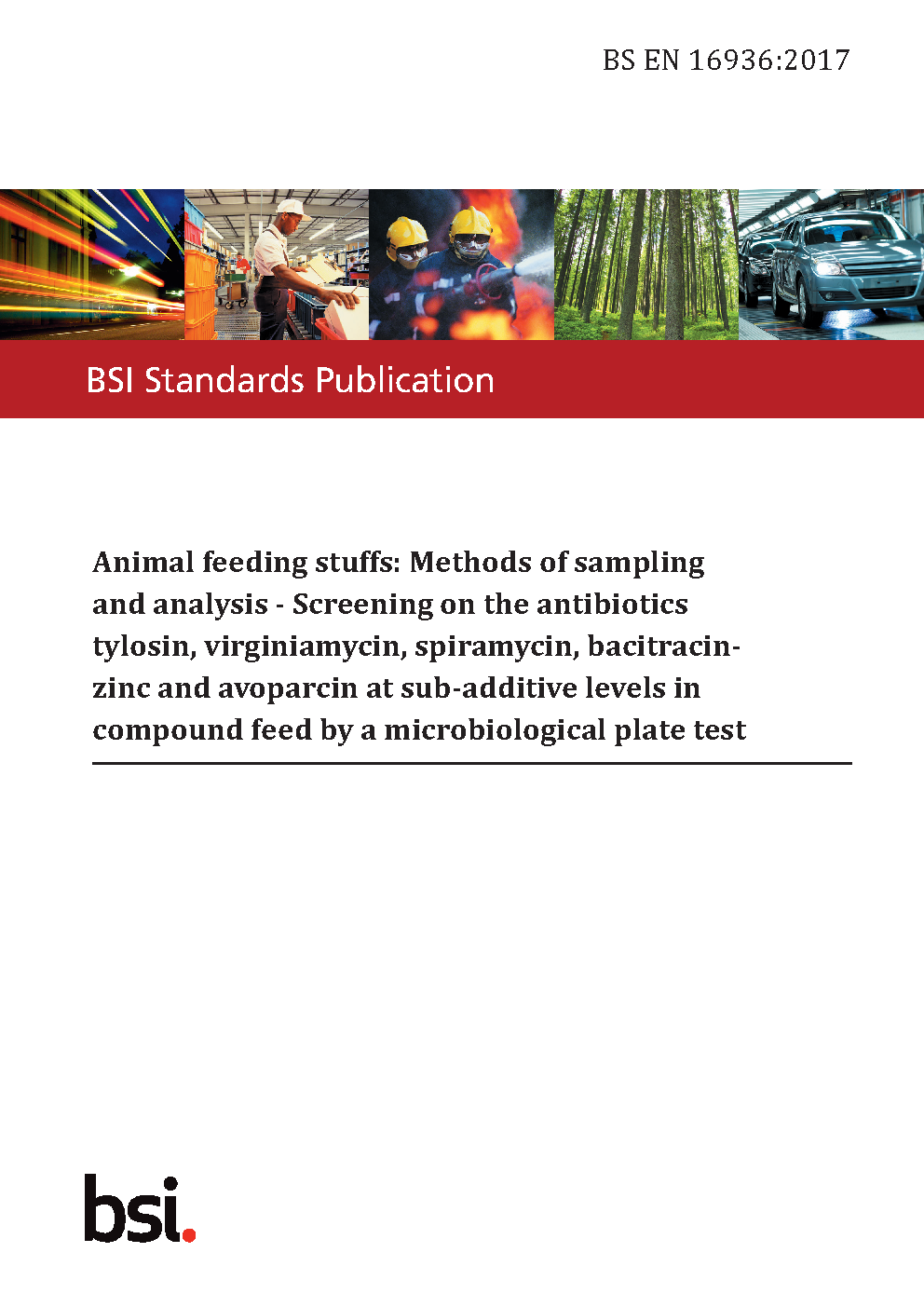 Animal feeding stuffs. Methods of sampling and analysis. Screening on the antibiotics tylosin, virginiamycin, spiramycin, bacitracin-zinc and avoparcin at sub-additive levels in compound feed by a microbiological plate test