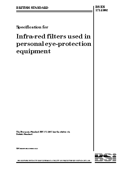 Specification for infra-red filters used in personal eye-protection equipment