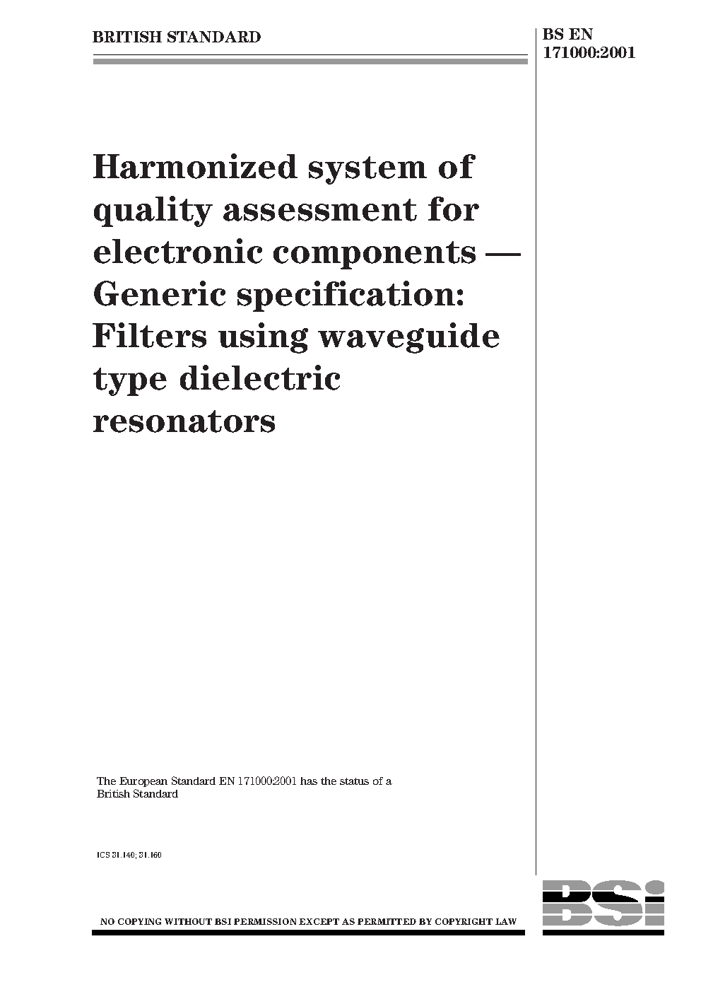 Harmonized system of quality assessment for electronic components. Generic specification. Filters using waveguide type dielectric resonators