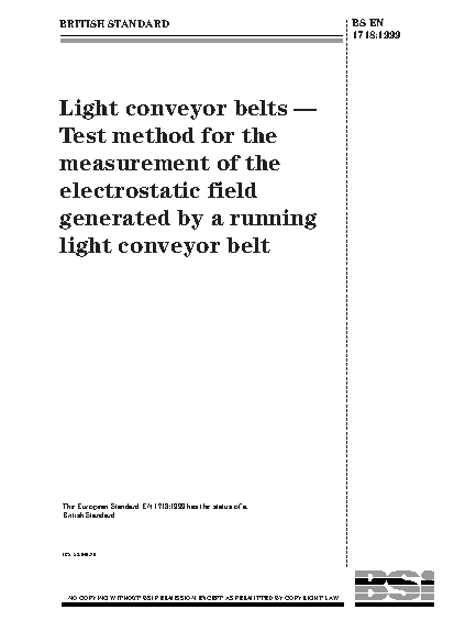 Light conveyor belts. Test method for the measurement of the electrostatic field generated by a running light conveyor belt
