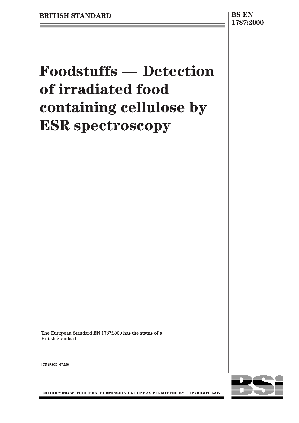 Foodstuffs. Detection of irradiated food containing cellulose by ESR spectroscopy