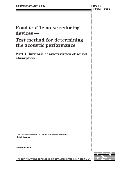 Road traffic noise reducing devices. Test method for determining the acoustic performance Intrinsic characteristics of sound absorption