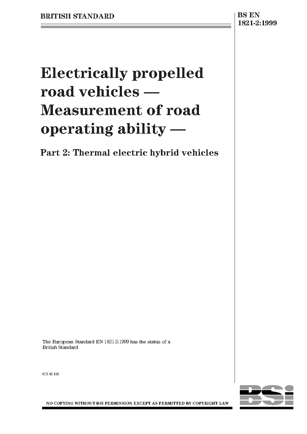 Electrically propelled road vehicles. Measurement of operating ability Thermal electric hybrid vehicles