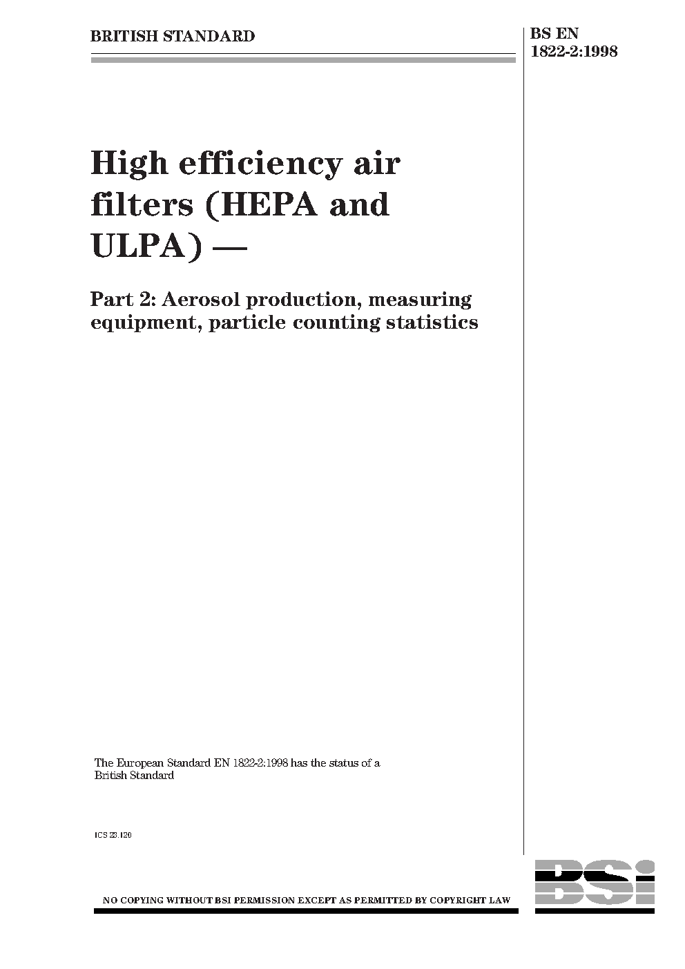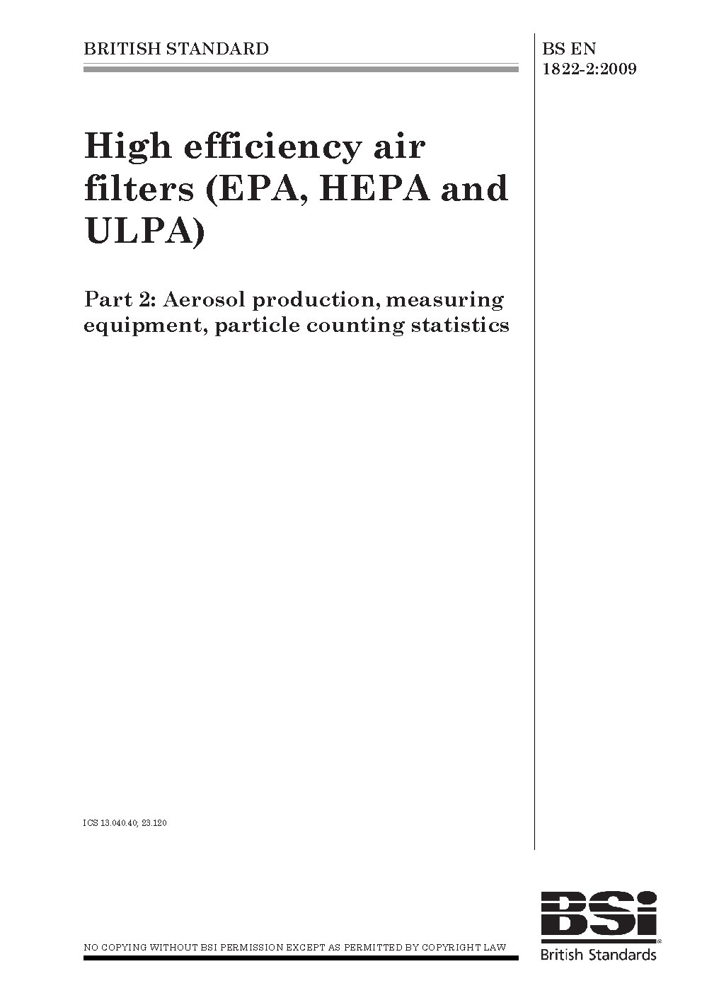 High efficiency air filters (EPA, HEPA and ULPA) Aerosol production, measuring equipment, particle counting statistics