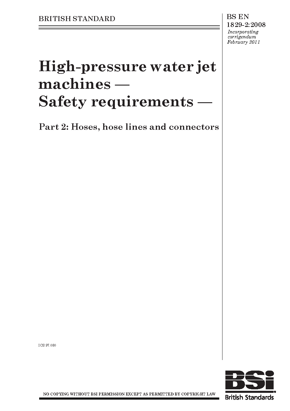High-pressure water jet machines. Safety requirements Hoses, hose lines and connectors