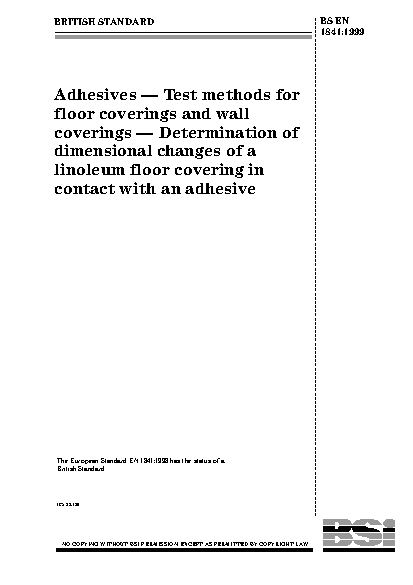Adhesives. Test methods for floor coverings and wall coverings. Determination of dimensional changes of a linoleum floor covering in contact with an adhesive