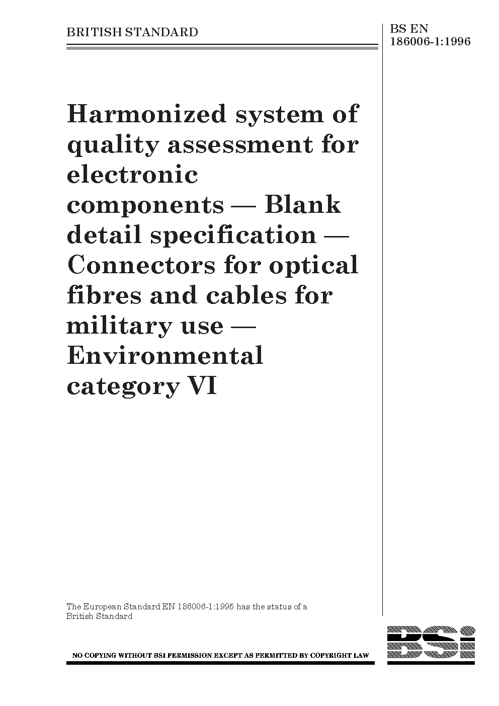 Harmonized system of quality assessment for electronic components. Blank detail specification. Connectors optical fibres and cables military use Environmental category VI