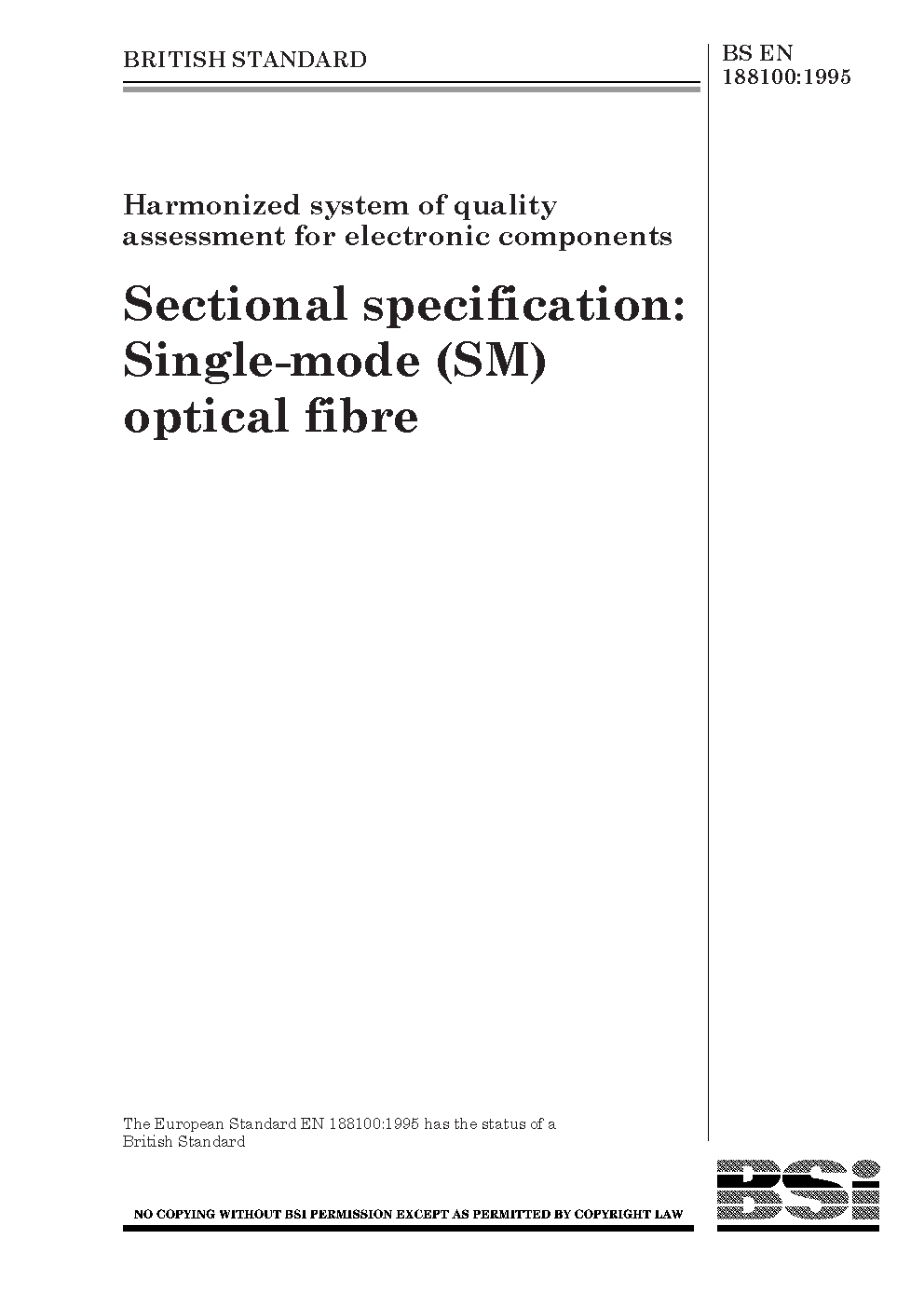 Harmonized system of quality assessment for electronic components. Sectional specification: single-mode (SM) optical fibre