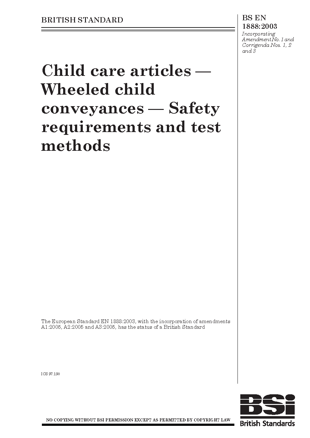 Child care articles. Wheeled child conveyances. Safety requirements and test methods