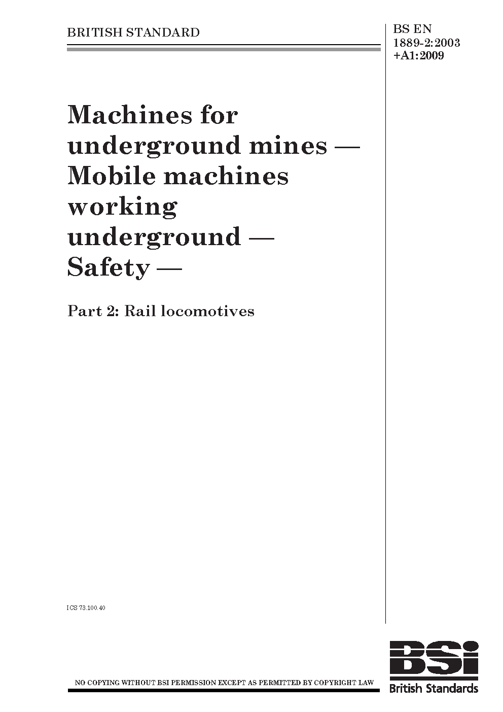 Safety devices;Electrical equipment;Fire safety;Warning devices;Hydraulic transmission systems;Drilling machines;Mining equipment;Battery-powered devices;Locomotives;Electric cables;Railway equipment;Performance testing;Diesel engines;Vehicle controls;Hazards;Vehicle lights;Marking;Railway vehicle components;Machine tools;Braking systems;Illuminance;Towing attachments;Mines;Underground mining;Maintenance;Materials handling equipment;Pneumatic transmission systems;Safety measures;Approval testing