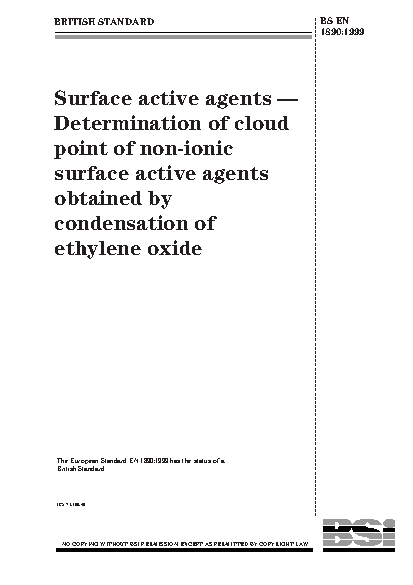 Detergents;Temperature measurement;Chemical analysis and testing;Hydrophobic materials;Selection;Condensation;Cloud point;Ethylene oxide;Surfactants;Reproducibility;Test equipment;Phase equilibrium