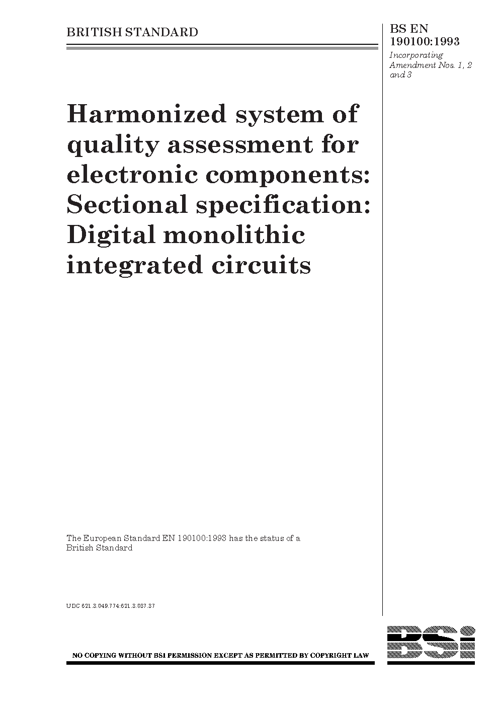 Harmonized system of quality assessment for electronic components: sectional specification: digital monolithic integrated circuits