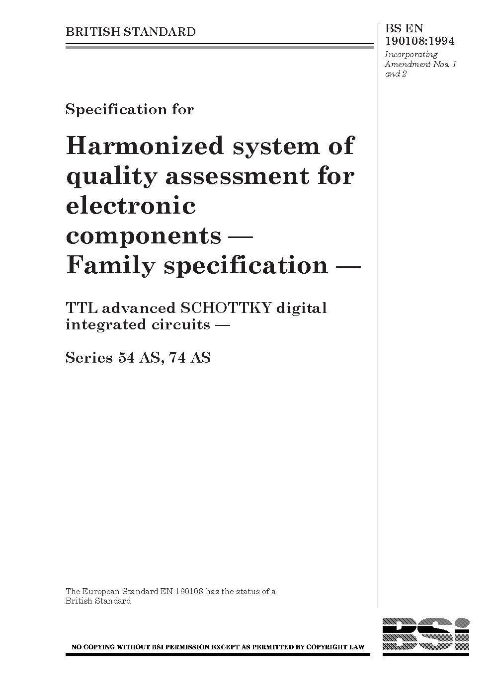 Specification for harmonized system of quality assessment for electronic components. Family specification. TTL advanced SCHOTTKY digital integrated circuits series 54 AS, 74 AS