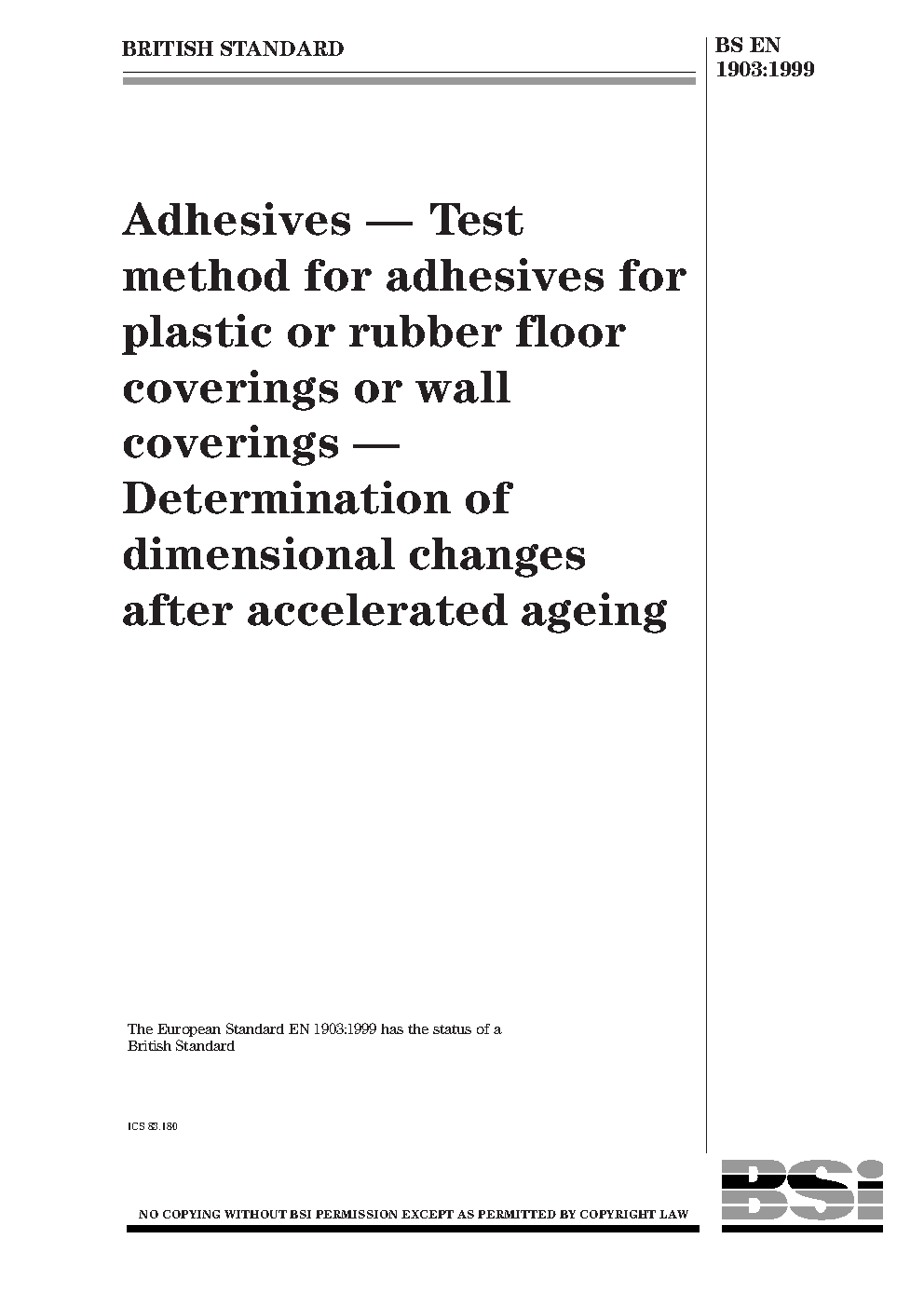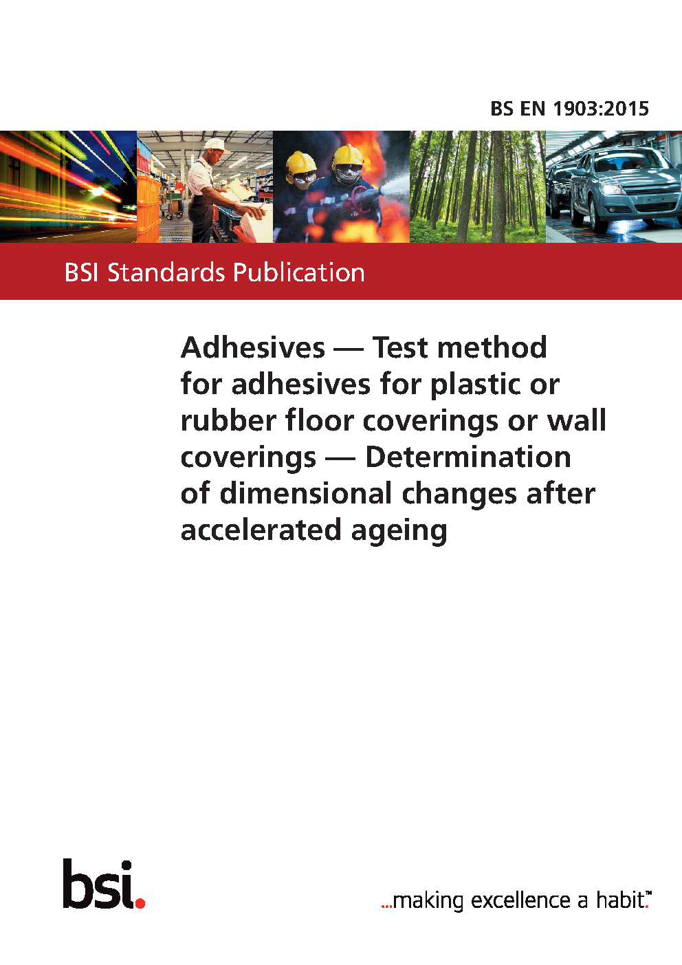 Adhesives. Test method for adhesives for plastic or rubber floor coverings or wall coverings. Determination of dimensional changes after accelerated ageing
