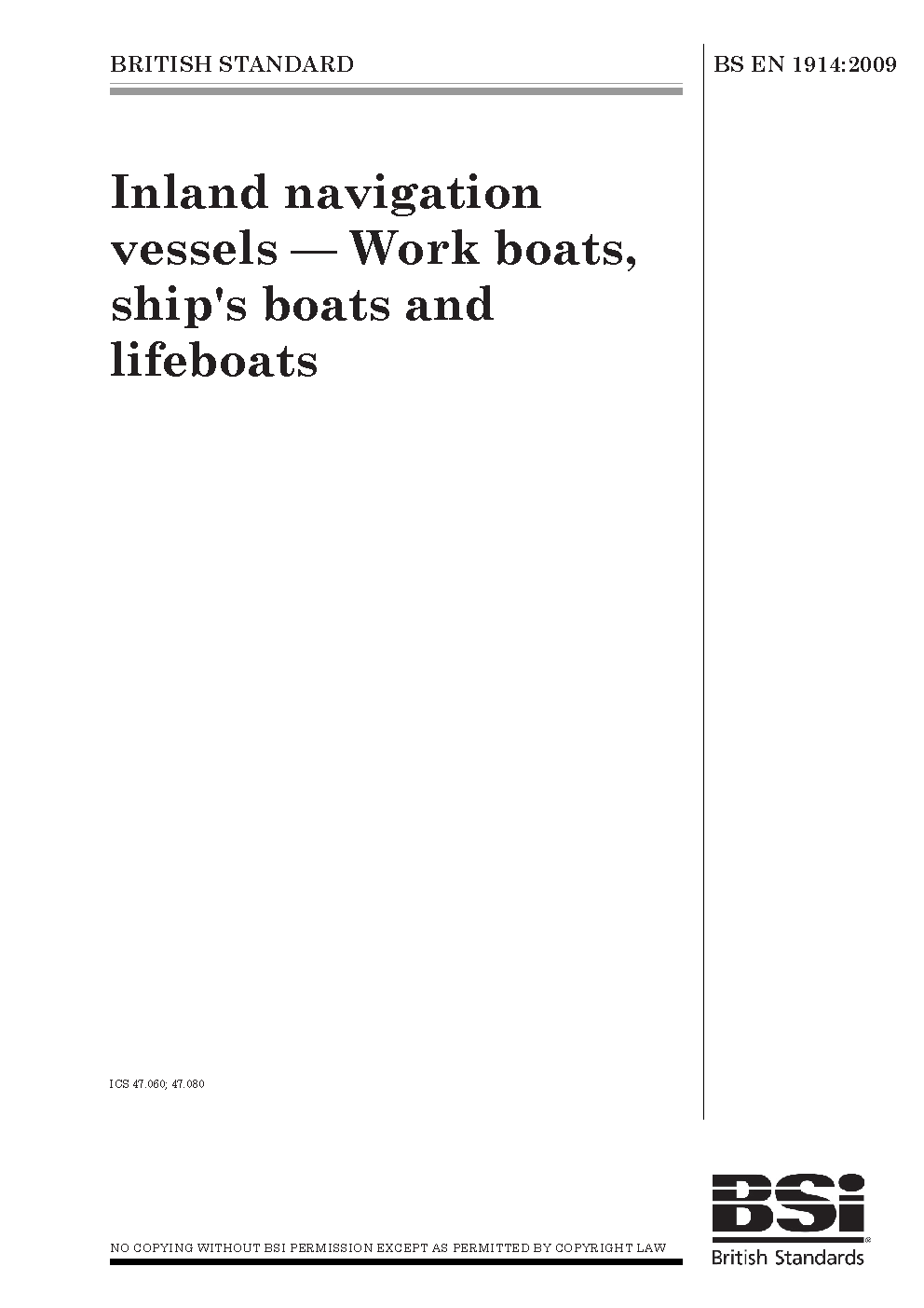 Inland navigation vessels. Work boats, ship's boats and lifeboats