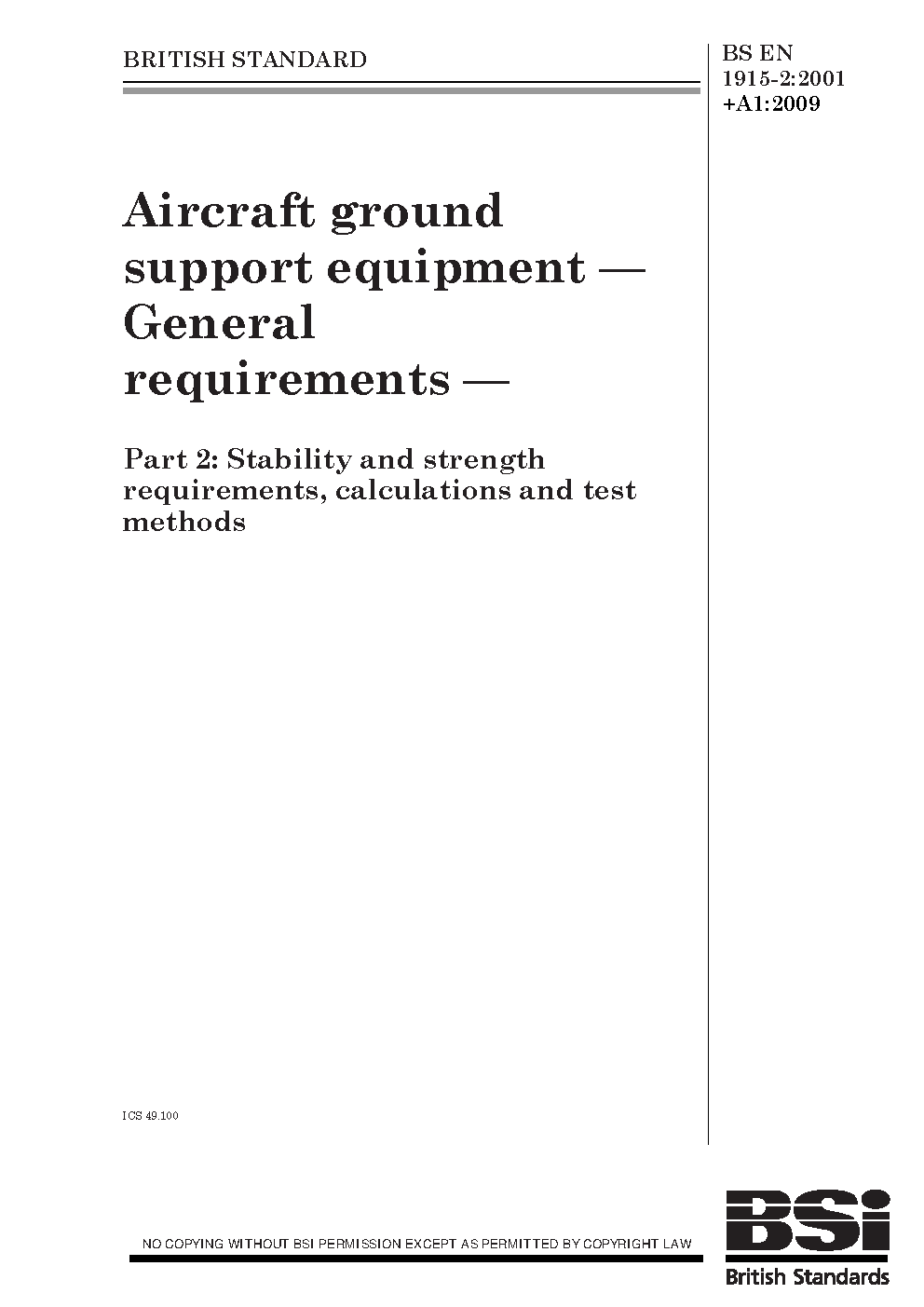 Aircraft ground support equipment. General requirements Stability and strength requirements, calculations test methods