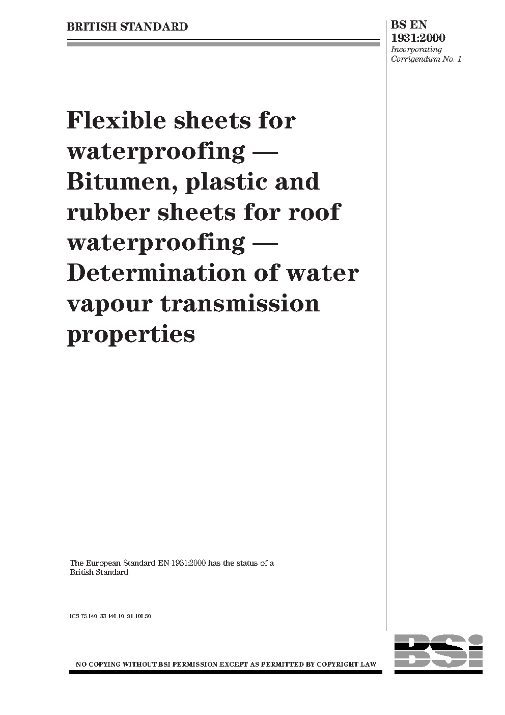 Waterproofing materials;Elastomers;Water-vapour tests;Permeability measurement;Bitumens;Watertightness tests;Thermoplastic polymers;Sheet materials;Plastics;Waterproof materials;Roofs;Flexibility