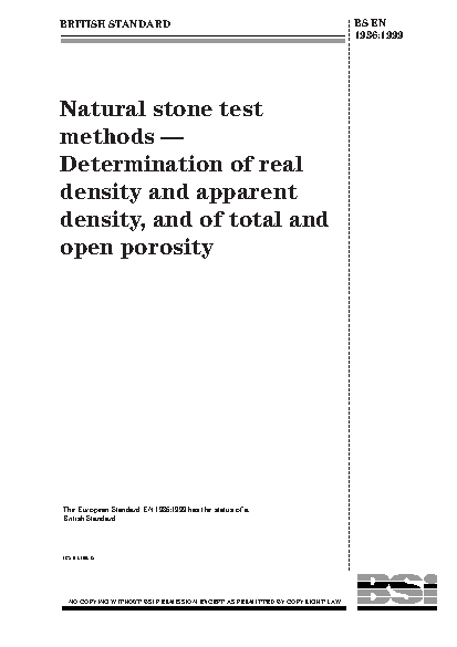 Natural stone test methods. Determination of real density and apparent density, and of total and open porosity