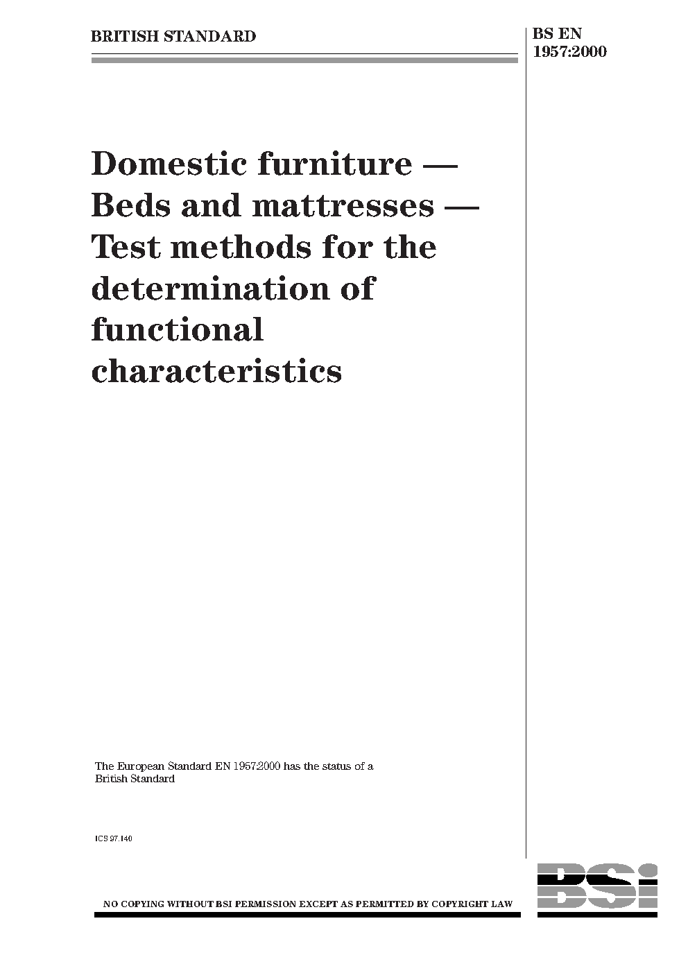 Furniture. Beds and mattresses. Test methods for the determination of functional characteristics and assessment criteria