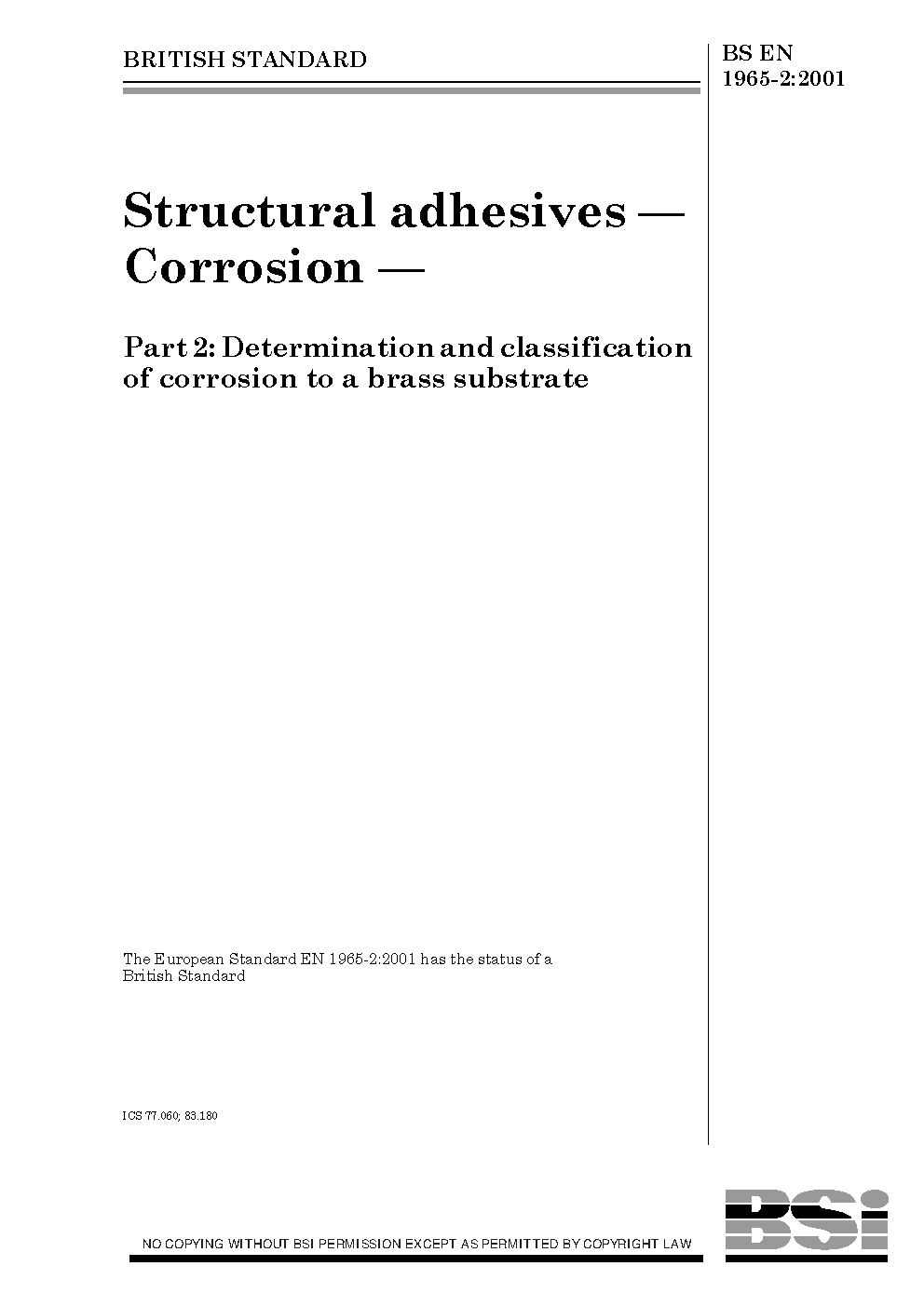 Structural adhesives. Corrosion Determination and classification of corrosion to a brass substrate
