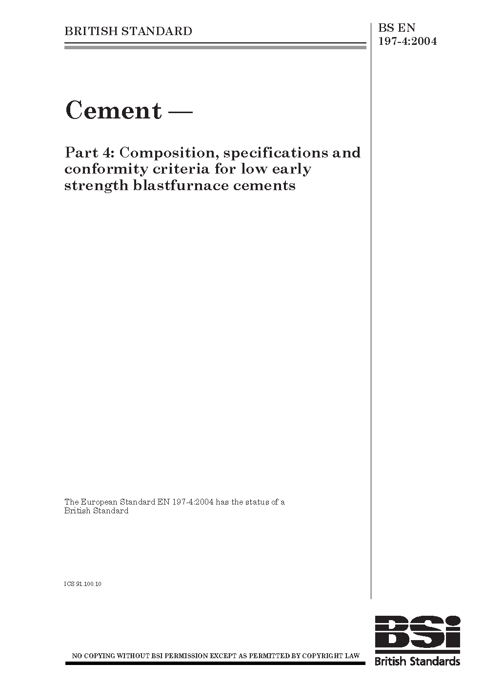 Cement Composition, specifications and conformity criteria for low early strength blastfurnace cements