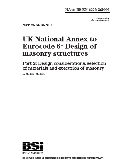 Eurocode 6. Design of masonry structures considerations, selection materials and execution
