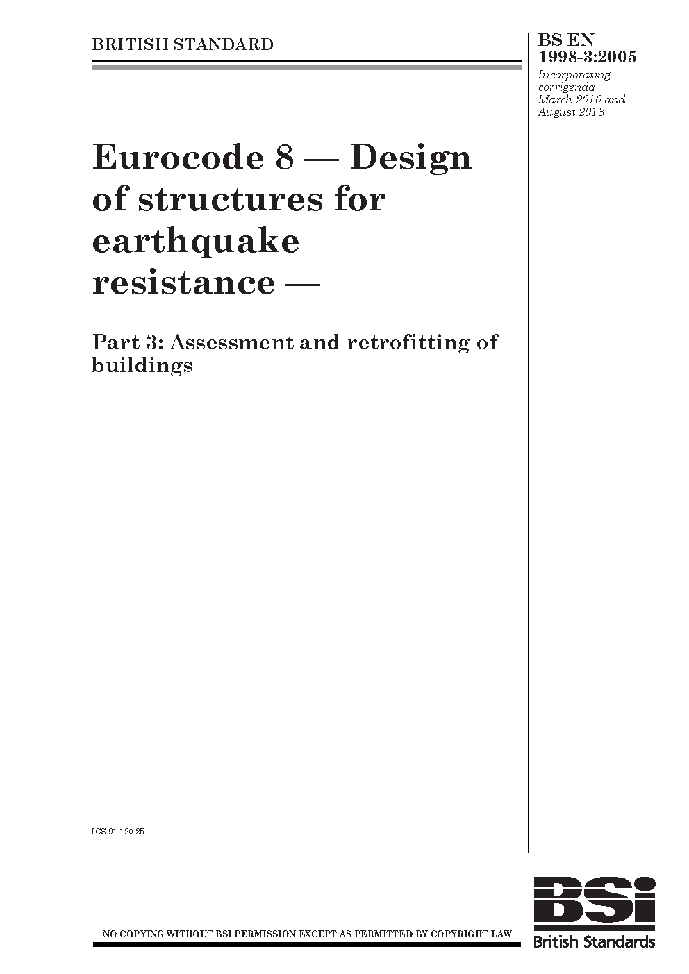 Eurocode 8. Design of structures for earthquake resistance Assessment and retrofitting buildings bridges