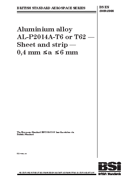 Aluminium alloy AL-P2014A T6 or T62. Sheet and strip. 0,4 mm = a = 6 mm