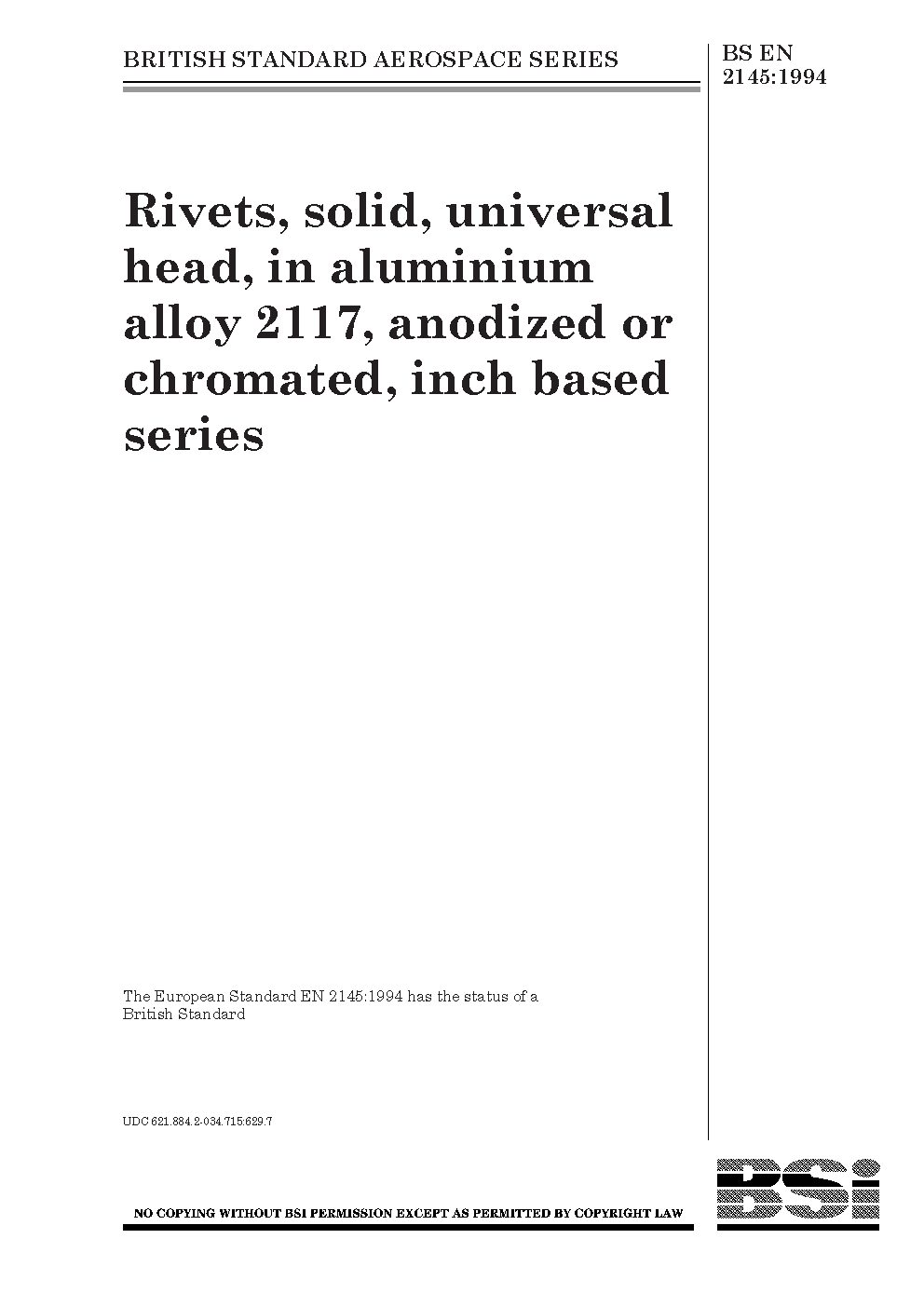 Preferred sizes;Temperature;Dimensions;Surface treatment;Rivets;Dimensional tolerances;Imperial system;Anodizing;Solid (shape);Threadless fasteners;Fasteners;Diameter;Marking;Designations;Aircraft components;Aluminium alloys;Mass