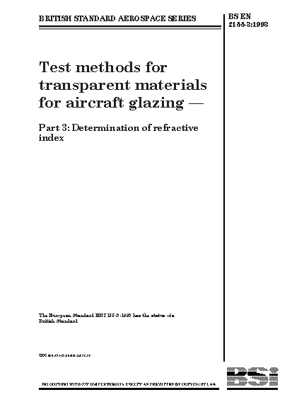 Specification for test methods transparent materials aircraft glazing Determination of refractive index